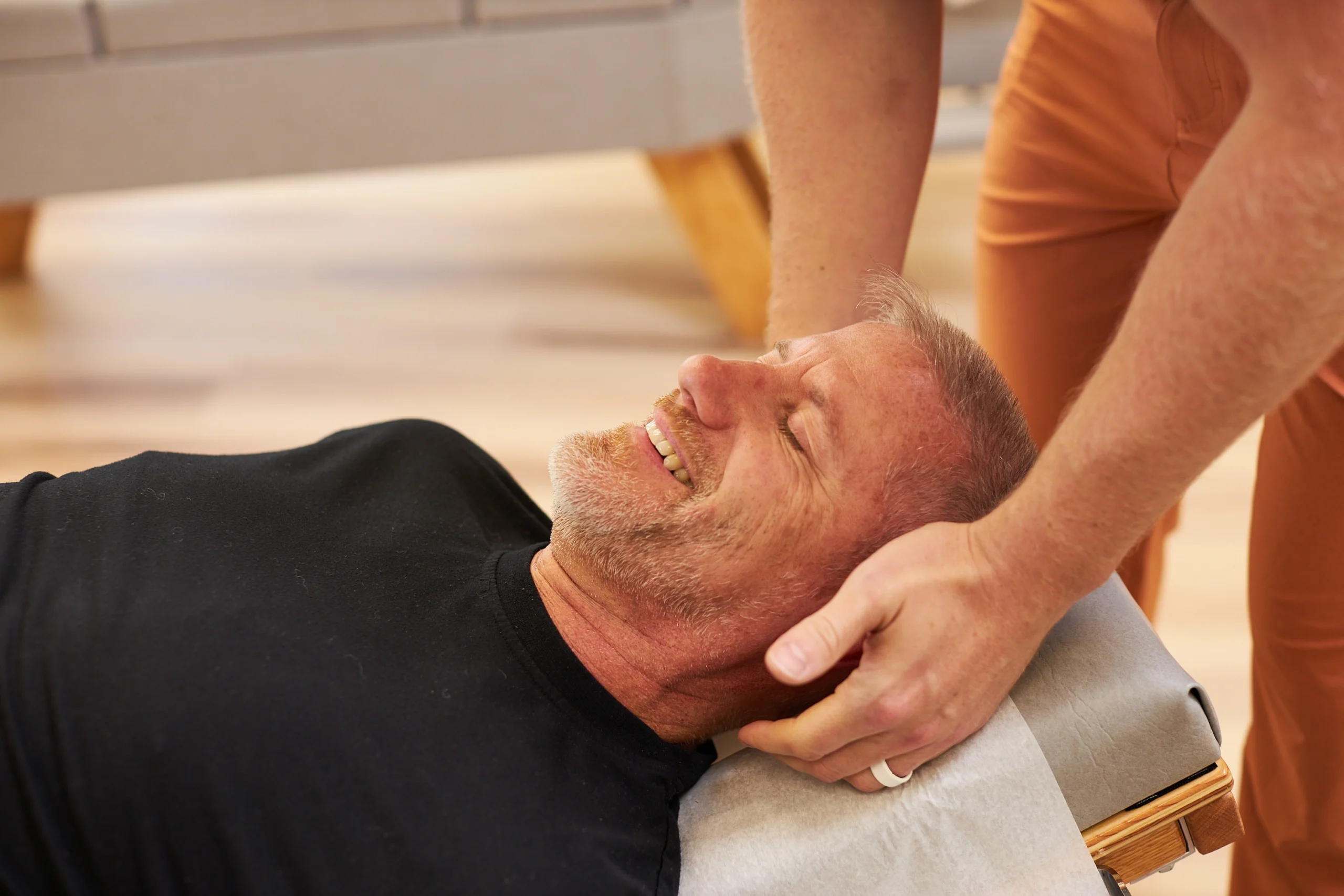 Once your joints are in the correct position, we focus on the muscles. This step helps your muscles support the correct position so the adjustments actually last.